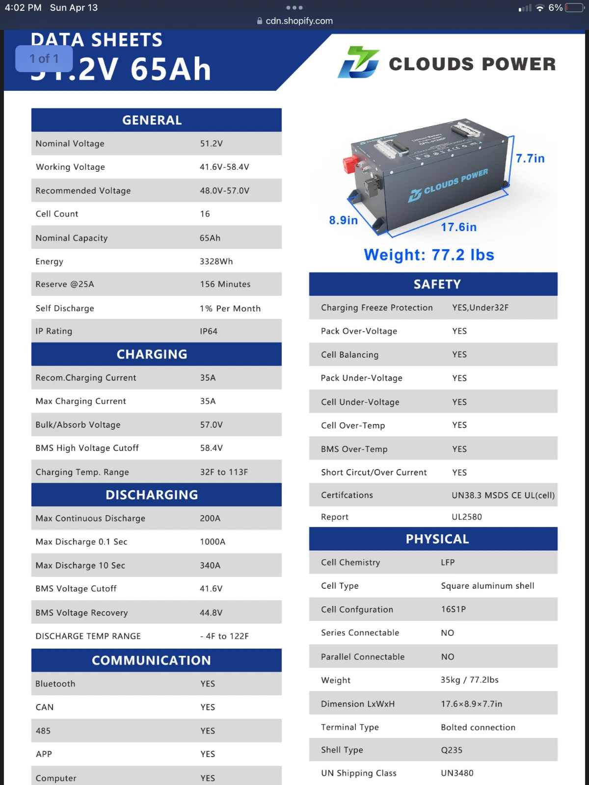 Built-in 200A BMS & Multiple Protection: The LiFePO4 battery built-in 200A BMS provides over-charge/discharge, over-current, high/low temperatures, and short-circuiting protection. The battery case is made of high-strength cold-rolled sheet metal is fireproof, shockproof and IP67 waterproof. With good thermal and chemical stability. Maintenance free, no daily maintenance work and cost.