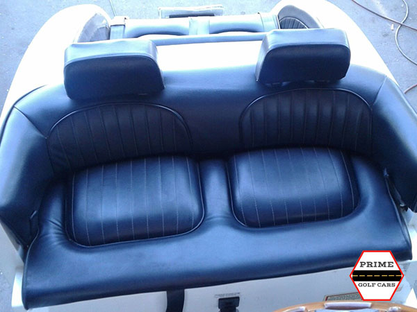 While most golf carts have a 4KW motor, Aluma golf carts have a powerful 5KW 48V AC motor, and feature a 400 amp programmable Curtis controller with regenerative braking – meaning that the energy used while slowing the cart is harnessed and used to help recharge and preserve the battery level. Aluma golf carts are also unique in that they have the largest golf car cabin in their class, making the Aluma cart ideal for drivers and passengers who are tall with its wide open space for leg room. Another feature is the folding rear footrest – the footrest on the back of the cart can be folded in to make the cart shorter, creating more space for storage. The back armrests on the cart also open for small storage space, and the back seats fold down to create a flat surface for transporting materials. Underneath the back seats is also another storage compartment, with a removable cover.